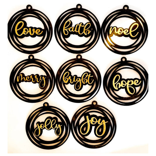Set van handgemaakte kerstornamenten met inspirerende woorden