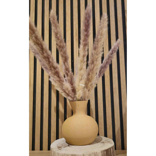 Onze vazen zijn voornamelijk geschikt voor droogbloemen en kunstbloemen, omdat ze niet volledig waterdicht zijn. Wil je toch verse bloemen plaatsen? Gebruik een binnenvaasje of waterdichte glazen cilinder.