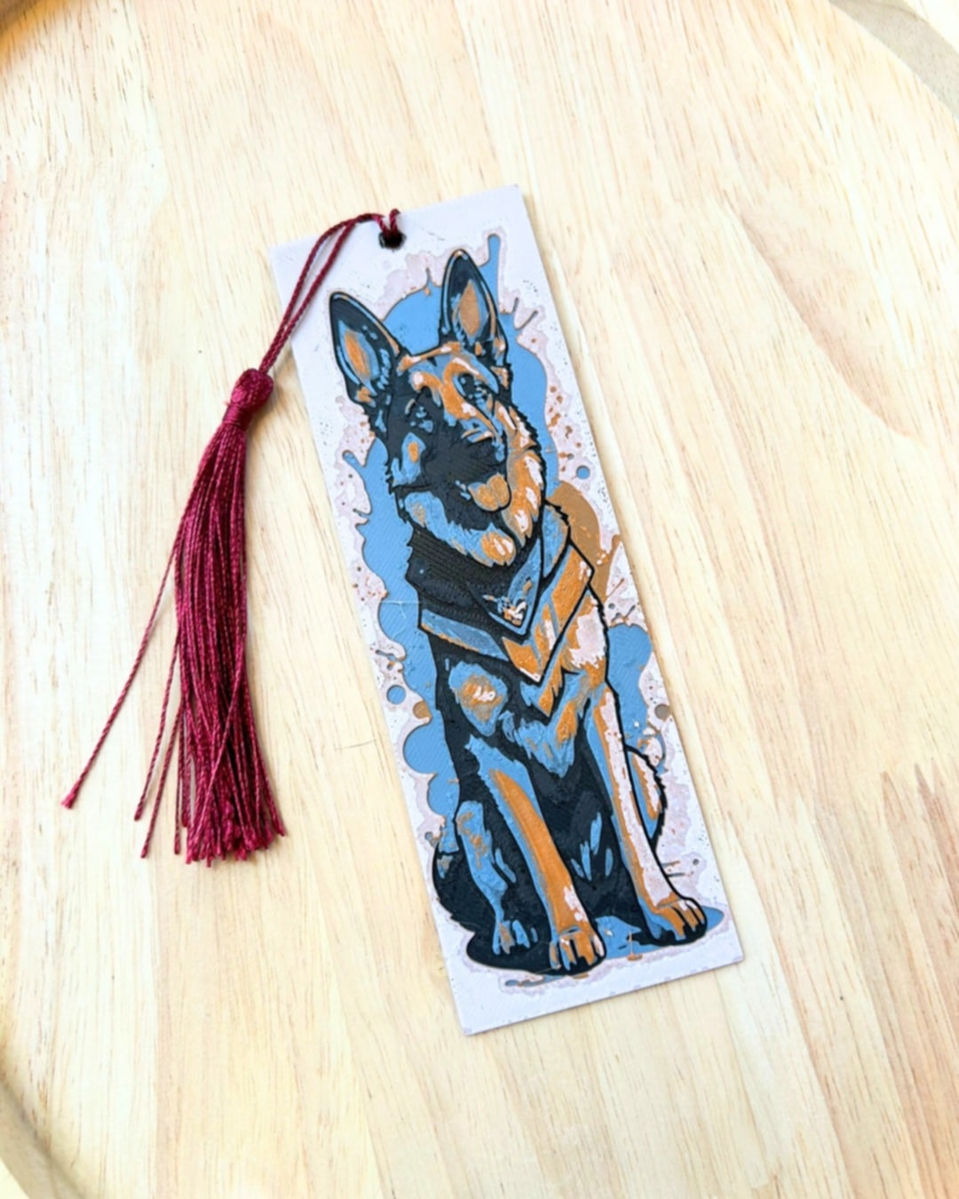 Sterk, loyaal en stijlvol – deze Duitse herder-bladwijzer is afgewerkt met een kwast waarvan de kleur kan variëren, voor een persoonlijke en unieke afwerking.