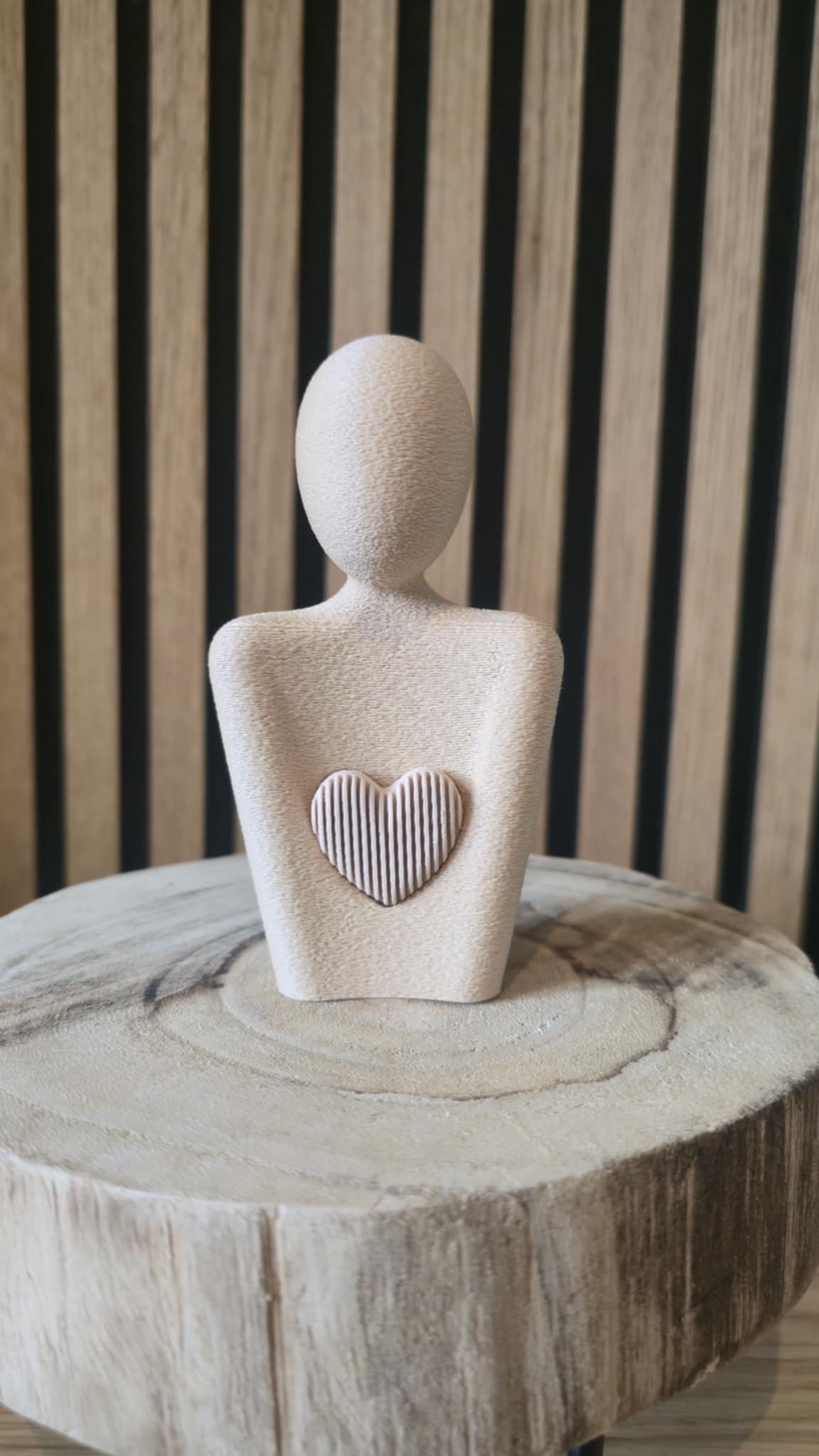 Een minimalistisch 3D-geprint beeldje met een subtiel hartje op de borst. Het staat symbool voor liefde, warmte en verbondenheid – een klein maar krachtig geschenk voor iemand die je dierbaar is, of als rustige blikvanger in huis.