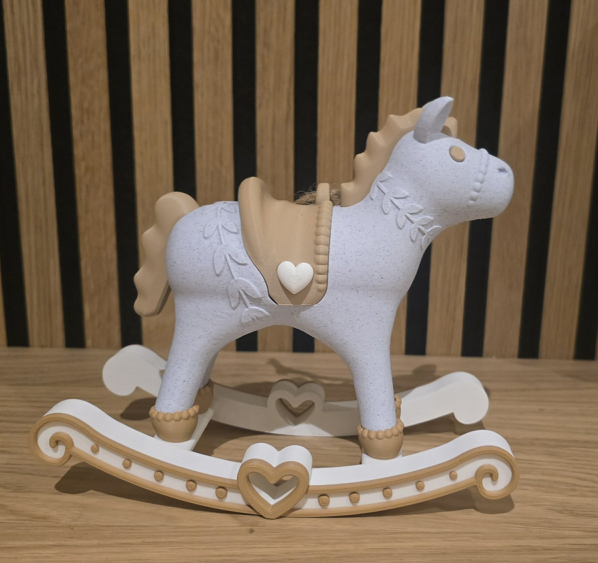 Dit schattige 3D-geprinte schommelpaardje brengt warmte en charme in elk interieur. Dankzij het touwtje aan het zadel kan je het paardje zowel ophangen als neerzetten perfect voor tijdens de feestdagen of als lieve decoratie het hele jaar door.