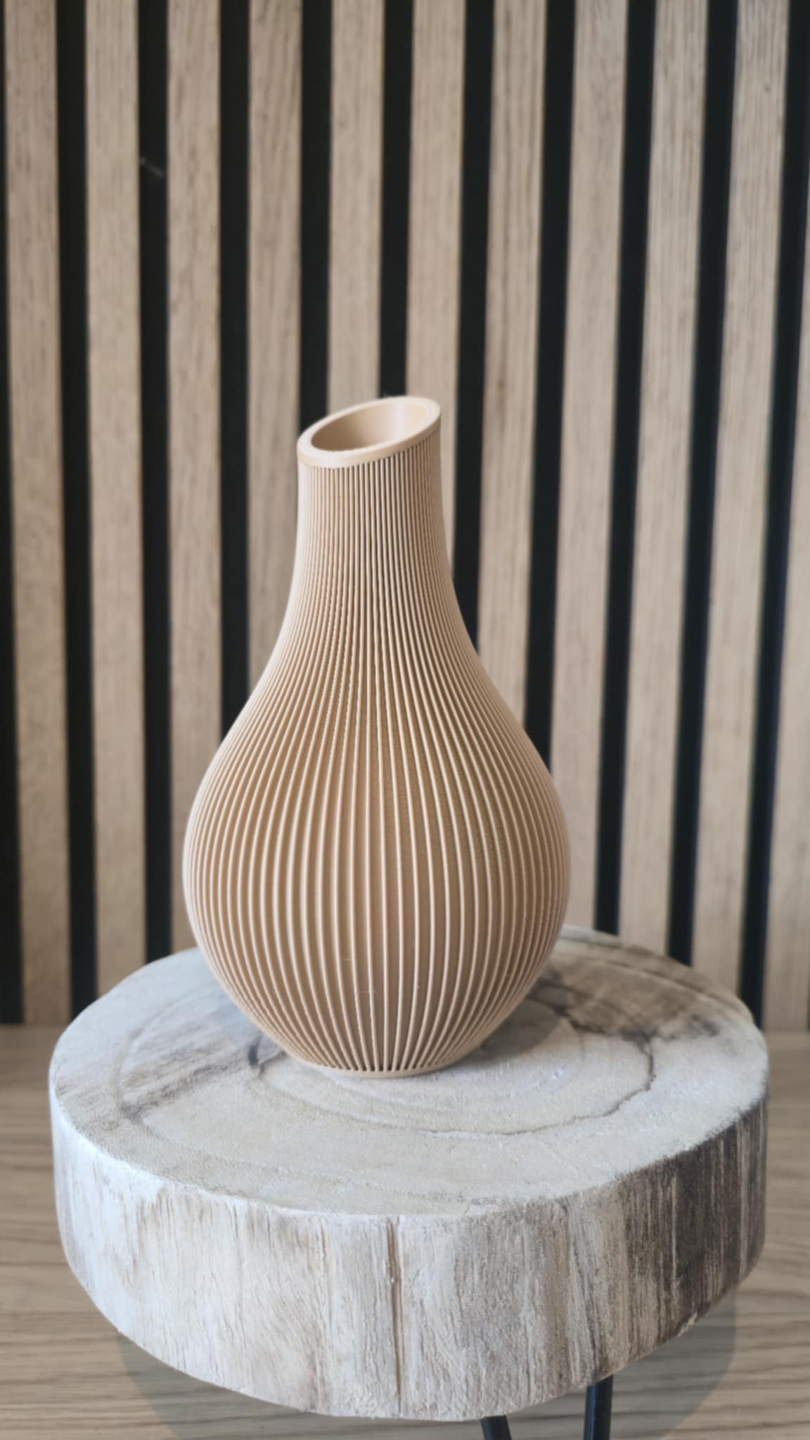 Minimalistisch, warm en tijdloos. De Shizu vaas past perfect in een Japandi interieur en komt het mooist tot zijn recht met droogbloemen. Het fijne verticale lijnenspel en de zachte, organische vorm brengen rust en harmonie in huis.